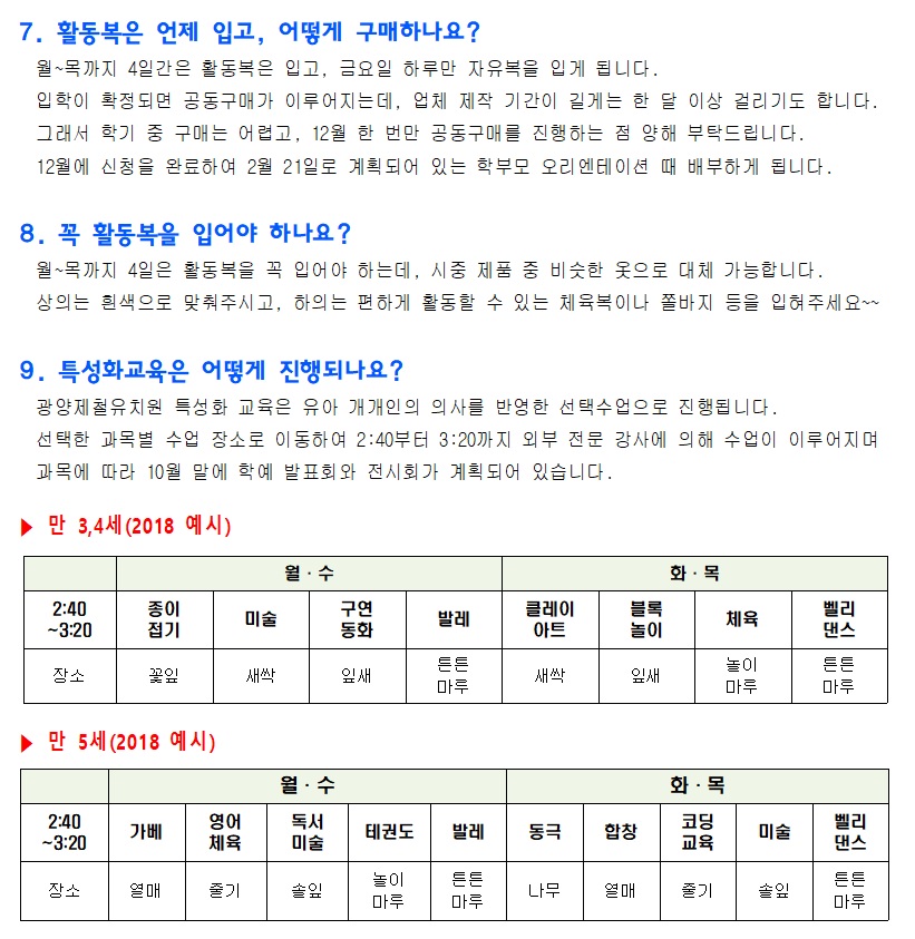 입학이 확정되신 예비 학부모님께서 궁금해 하시는 점들을 모아보았습니다.
