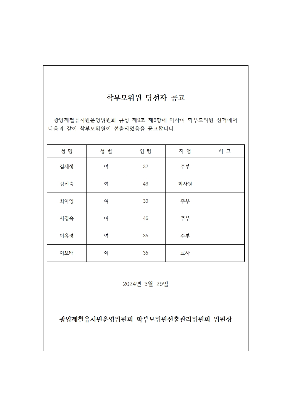 제 13기 광양제철유치원운영위원회 학부모위원 당선자 공고.jpg
