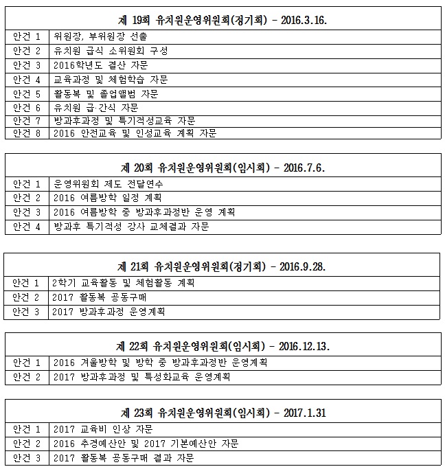 제5기 유치원 운영위원회 활동보고