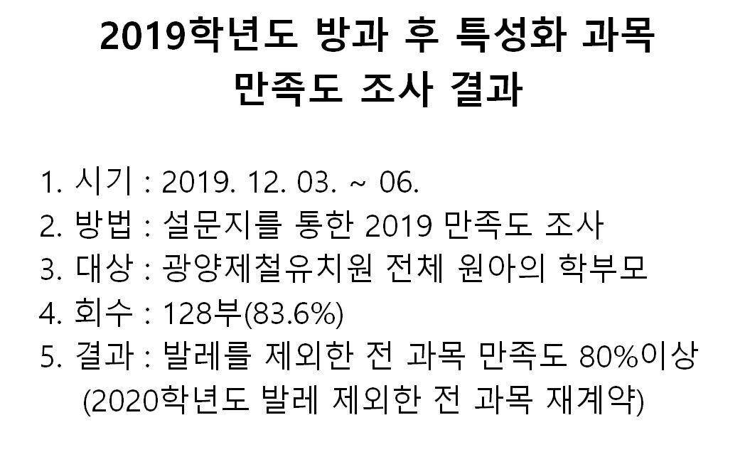 2019학년도 방과후 특성화 과목 만족도 조사 결과