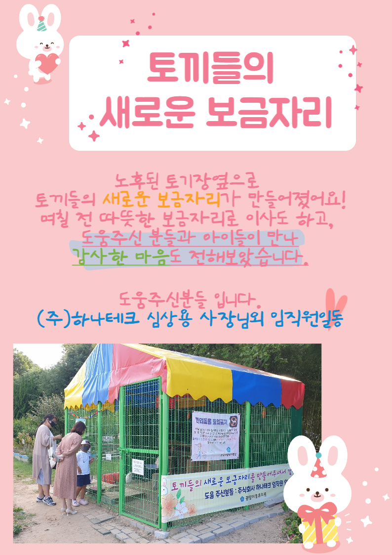 더 넓고 쾌적한 환경에서 토끼들이 잘 자랄 수 있도록 함께 보살펴주세요!