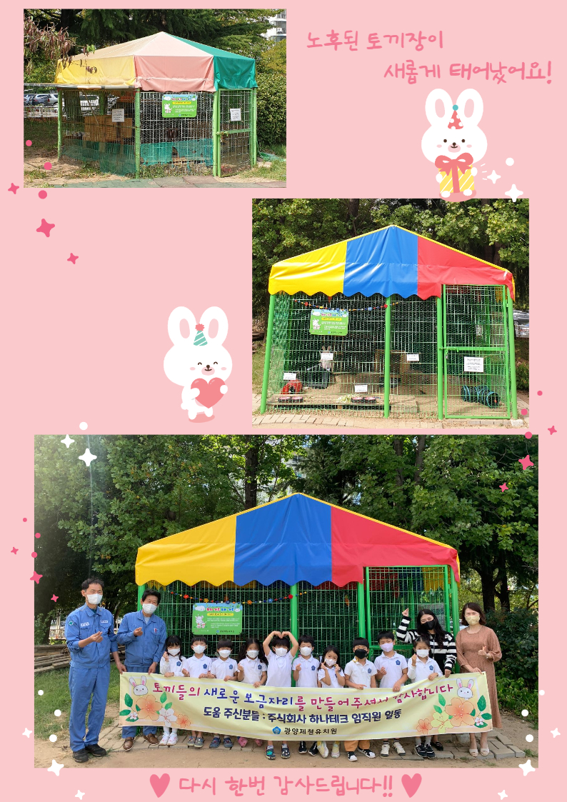 광양제철 친구들이 좋아하는 토끼친구들이 새로운 보금자리로 이사했습니다^^