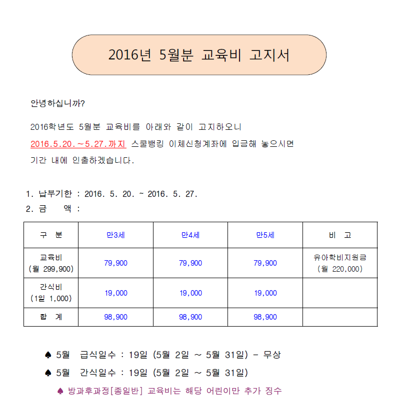 2016년 5월분 교육비 납부 안내