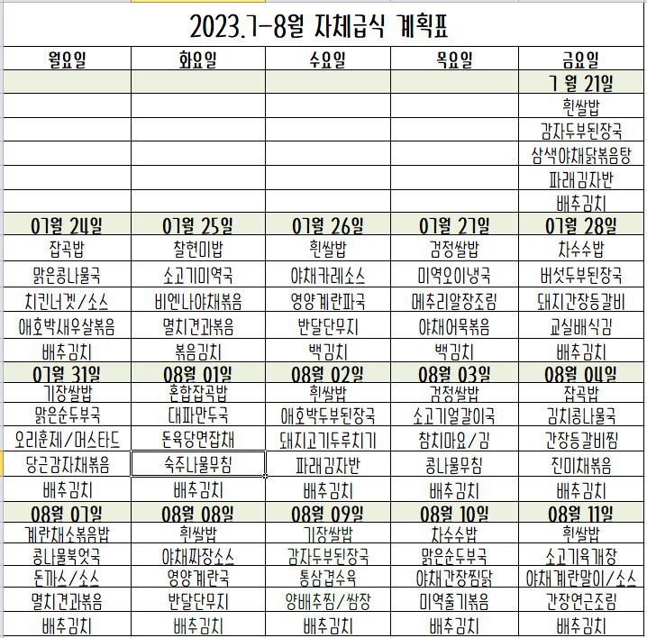 2023학년도 여름방학기간 급.간식 계획입니다.