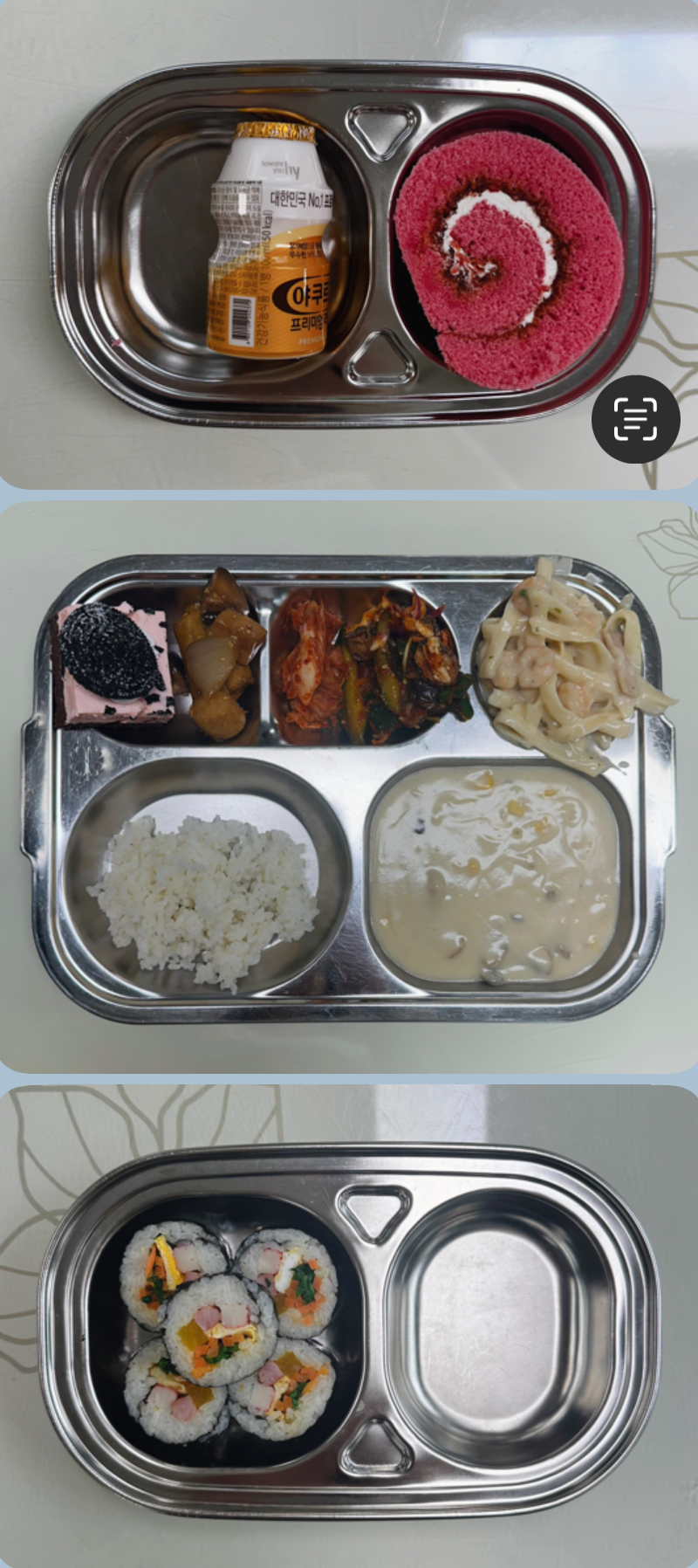 오늘 유치원 급식으로 급식실에서 직접 만든 수제김밥이