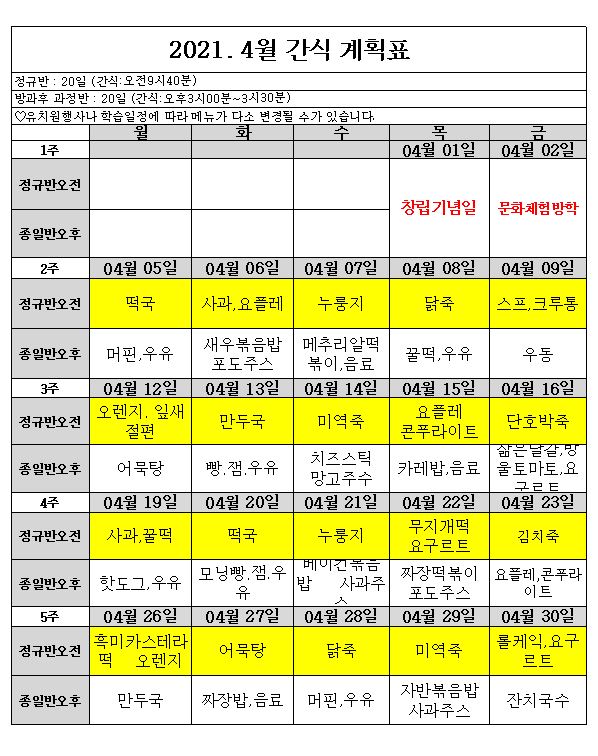 2021.4월 급.간식 계획