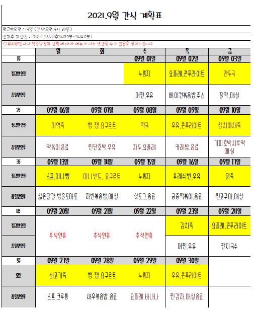 2021.9월 급.간식 계획